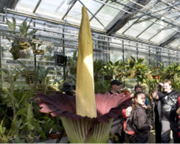 бНПТЖПЖБММХУ ФЙФБОЙЮЕУЛЙК (Amorphophallustitanum), ЙЪЧЕУФОЩК ФБЛЦЕ РПД ОБЪЧБОЙЕН "ФТХРОЩК ГЧЕФПЛ", ЙНЕЕФ ПДОП ЙЪ ЛТХРОЕКЫЙИ УПГЧЕФЙК Ч НЙТЕ. оП ЪОБНЕОЙФ ПО Ч РЕТЧХА ПЮЕТЕДШ ВМБЗПДБТС ПФЧТБФЙФЕМШОПНХ "БТПНБФХ" Й ТЕДЛПУФЙ ГЧЕФЕОЙС – Ч ыЧЕКГБТЙЙ Ч РПУМЕДОЙК ТБЪ ЬФП ТБУФЕОЙЕ ГЧЕМП 75 МЕФ ОБЪБД.